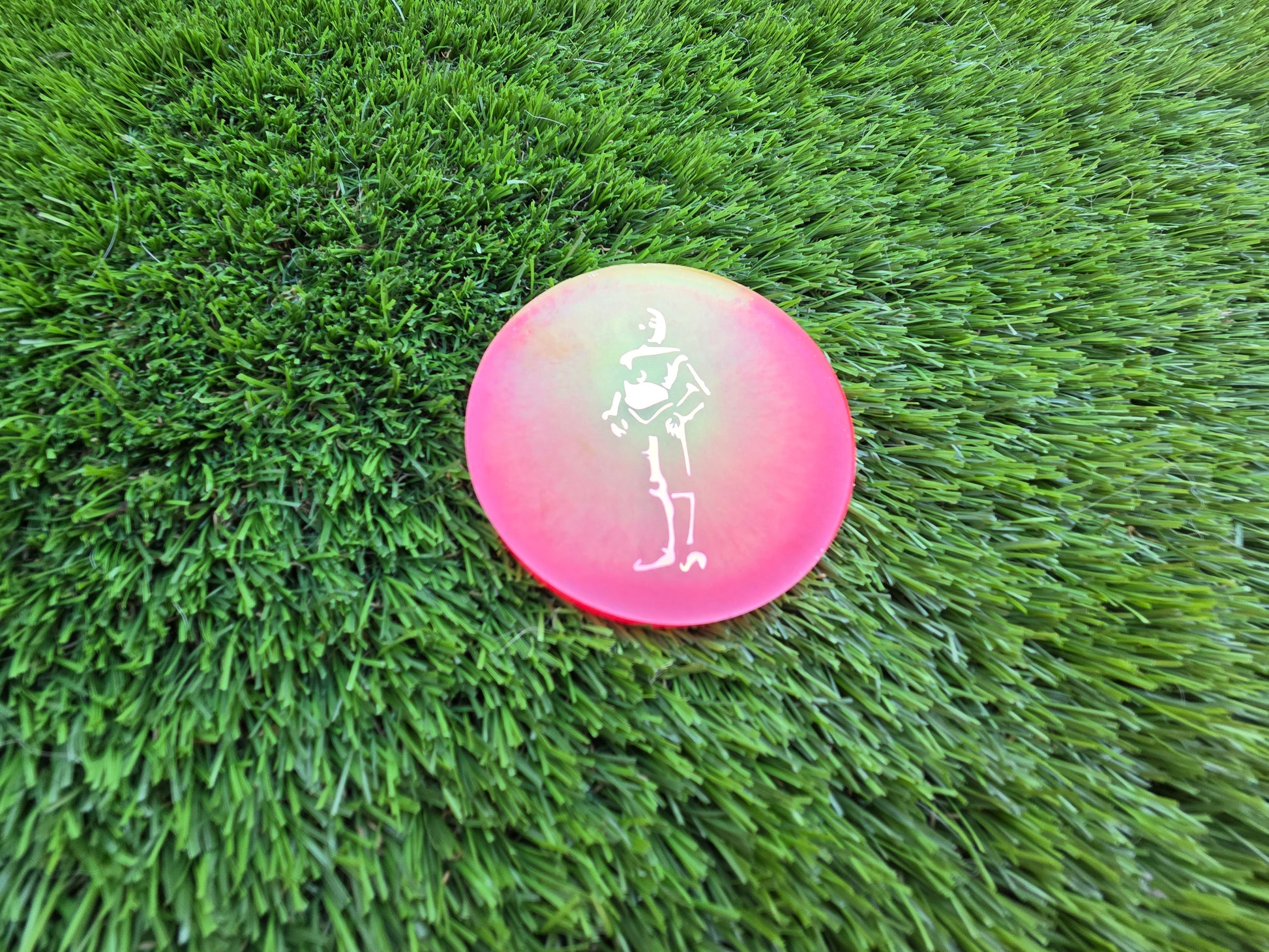 3.5 inches. Super Glow pigment in epoxy. C3p0 vinyl.
